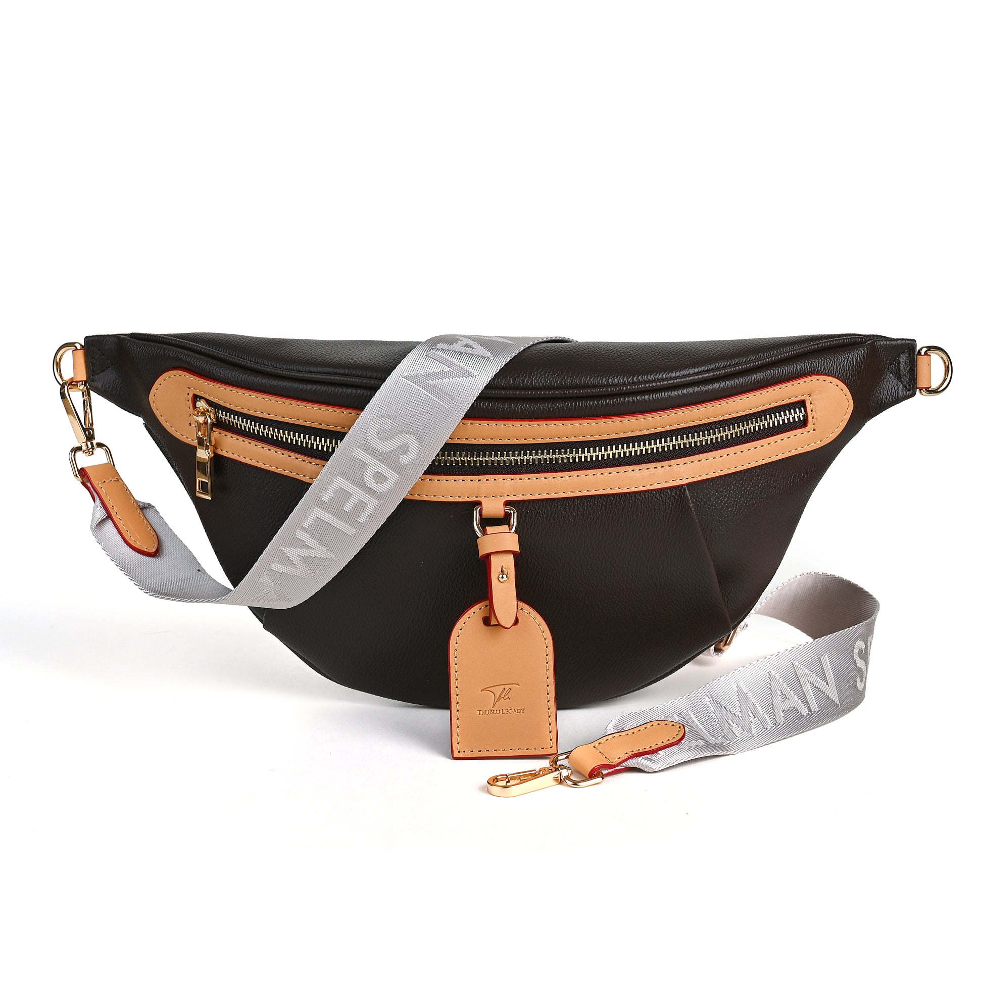 Inspired by the historic Abby Aldrich Rockefeller Hall at Spelman College, this sleek belt bag blends rich espresso canvas with natural leather trim and gold-tone hardware. Designed for versatility with a detachable canvas strap with the woven name of Spelman College, The Abby Bag carries your essentials in style, whether worn crossbody, at the waist, or over the shoulder.